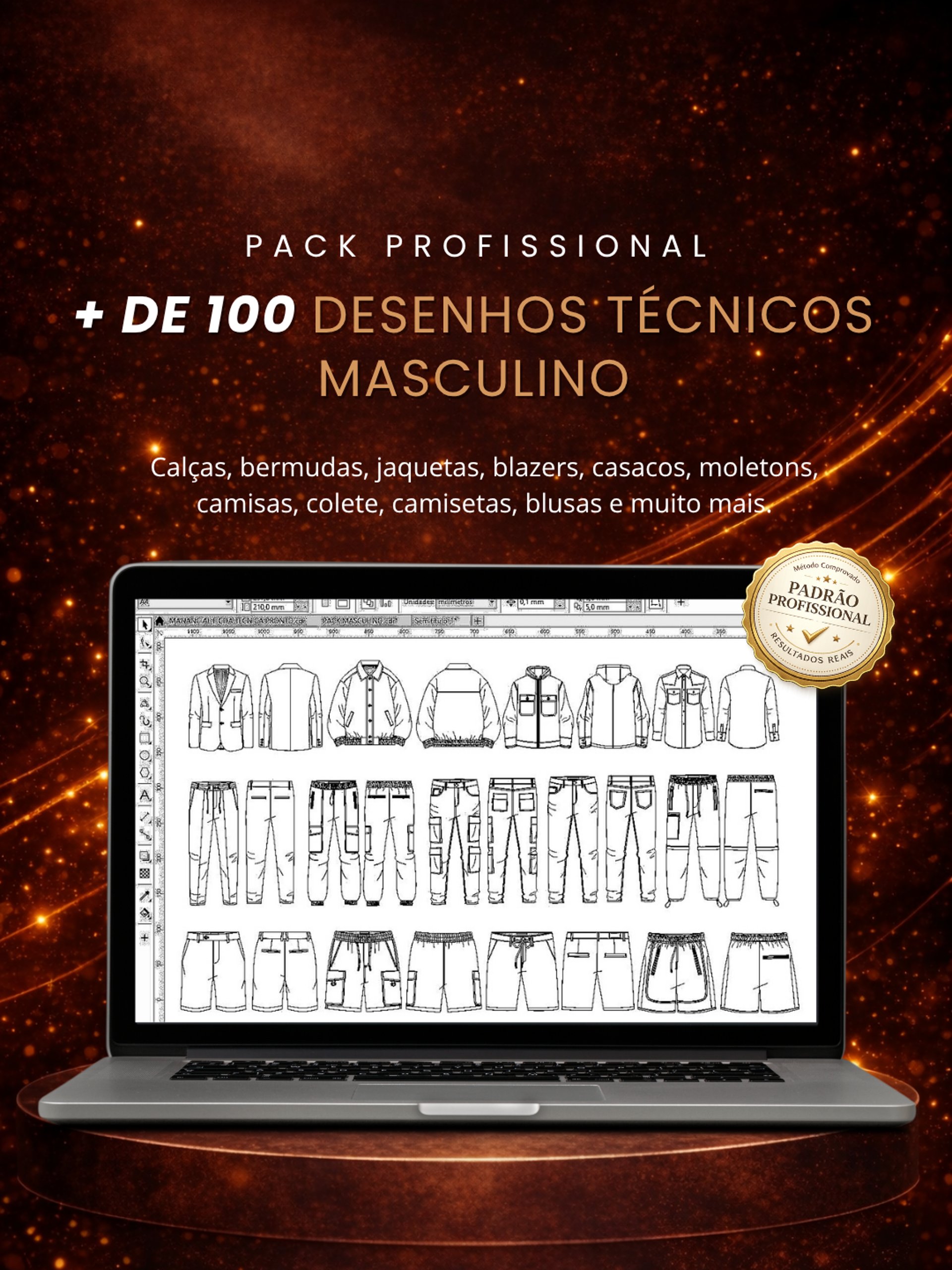 ✔ +100 desenhos técnicos masculinos prontos (bases profissionais para desenvolvimento)